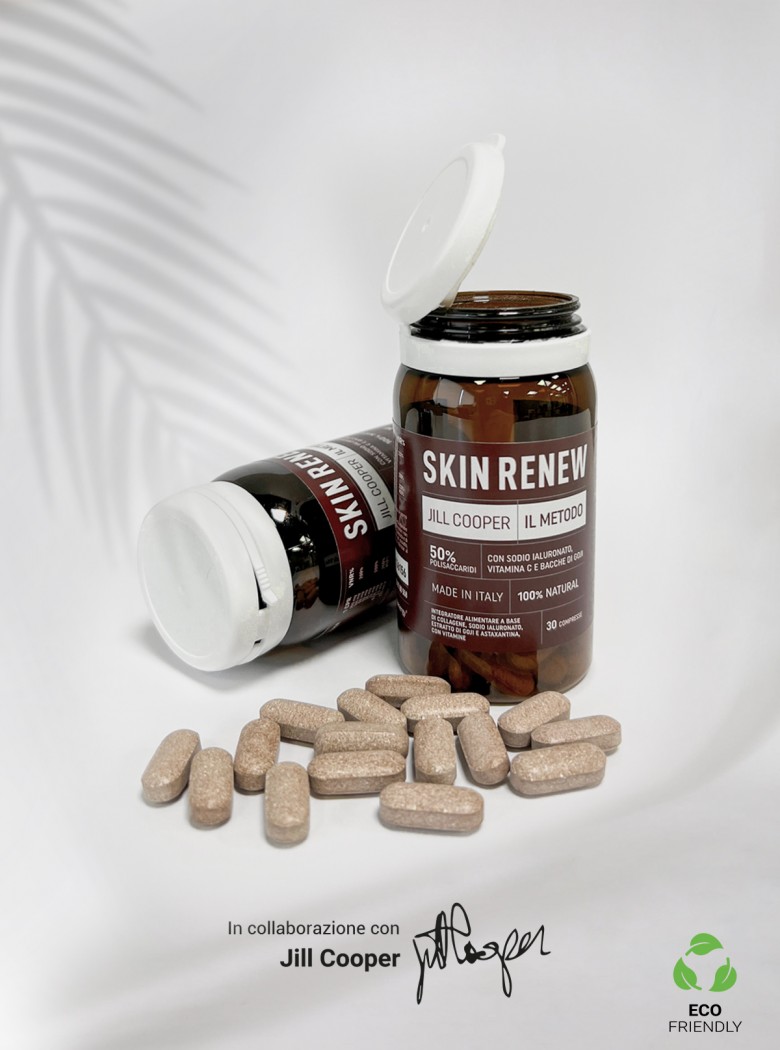 Stelle dich ein Nahrungsergänzungsmittel vor, das nicht nur deine Haut ernährt, sondern auch sie repariert und verjüngt. Das ist Skin Renew 30 caps: ein Elixier von Schönheit in Kapseln, das mit Leidenschaft und Kompetenz in Zusammenarbeit mit Jill Cooper hergestellt wurde, damit du junge und strahlende Haut haben kannst.