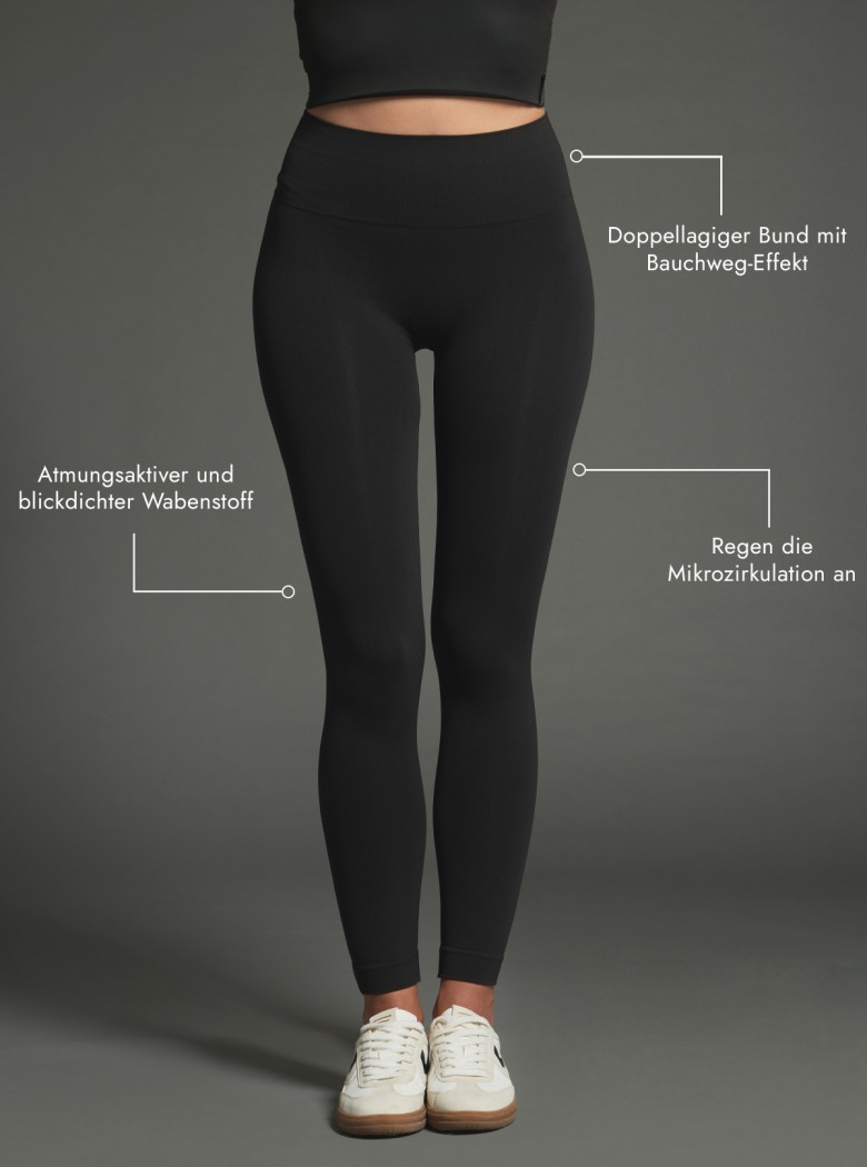 Die einzigen echten figurformenden und schlankmachenden Leggings, der Design und kosmetische Textiltechnologie vereint – für sichtbare Ergebnisse bereits nach wenigen Tagen.
