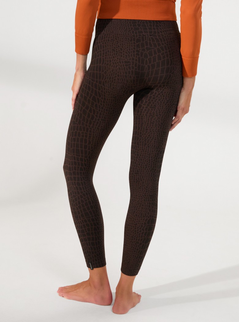 Mit Kroko-Effekt auf den gesamten Leggings.