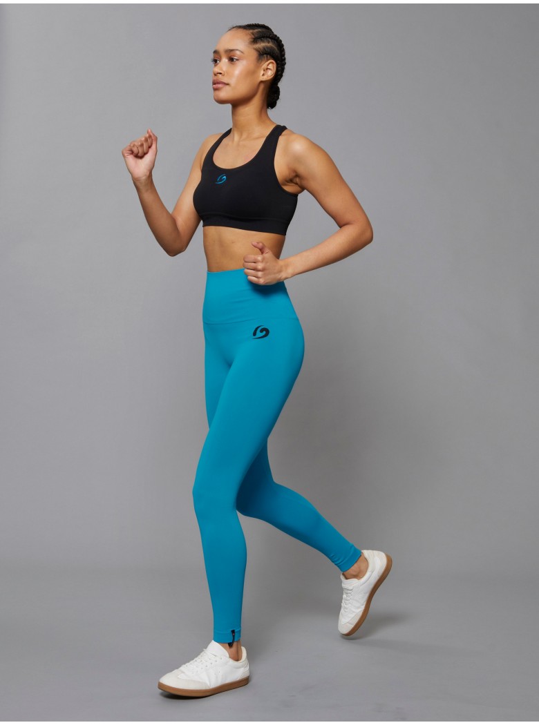 Umschmeichelt, formt, hebt hervor. Diese Leggings sind mehr als nur ein technisches Kleidungsstück - sie sind eine eine sanfte Umarmung, die deine Silhouette neu definiert und deine Bewegungen mit Leichtigkeit und Sicherheit begleitet. Der schlankmachende Effekt an den Hüften, Taille und Oberschenkel formt deine Silhouette. Das atmungsaktive Gewebe aus recyceltem Garn ist weich und anschmiegsam, eine echte zweite Haut, die sich um dich und die Umwelt kümmert.
