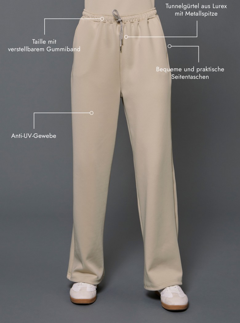 Der Tunnelzug aus Lurex-Garn mit Metallspitze und die Taille mit Gummiband gewährleisten eine perfekte Passform.