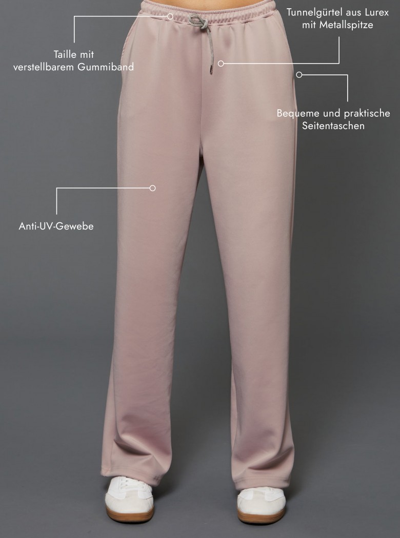 Der Tunnelzug aus Lurex-Garn mit Metallspitze und die Taille mit Gummiband gewährleisten eine perfekte Passform.