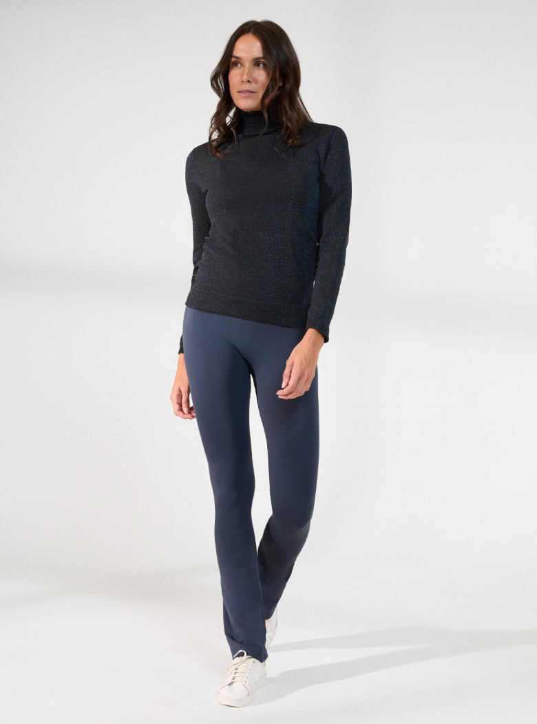 Set: Modellierender Stehkragenpullover aus Lurex + Schlaghose