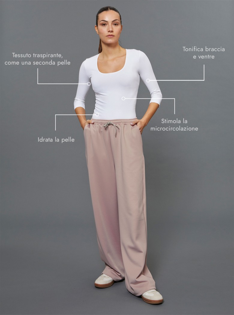 Aus feuchtigkeitsspendendem, straffendem und schlankem Dermofibra® Cosmetics-Stoff.