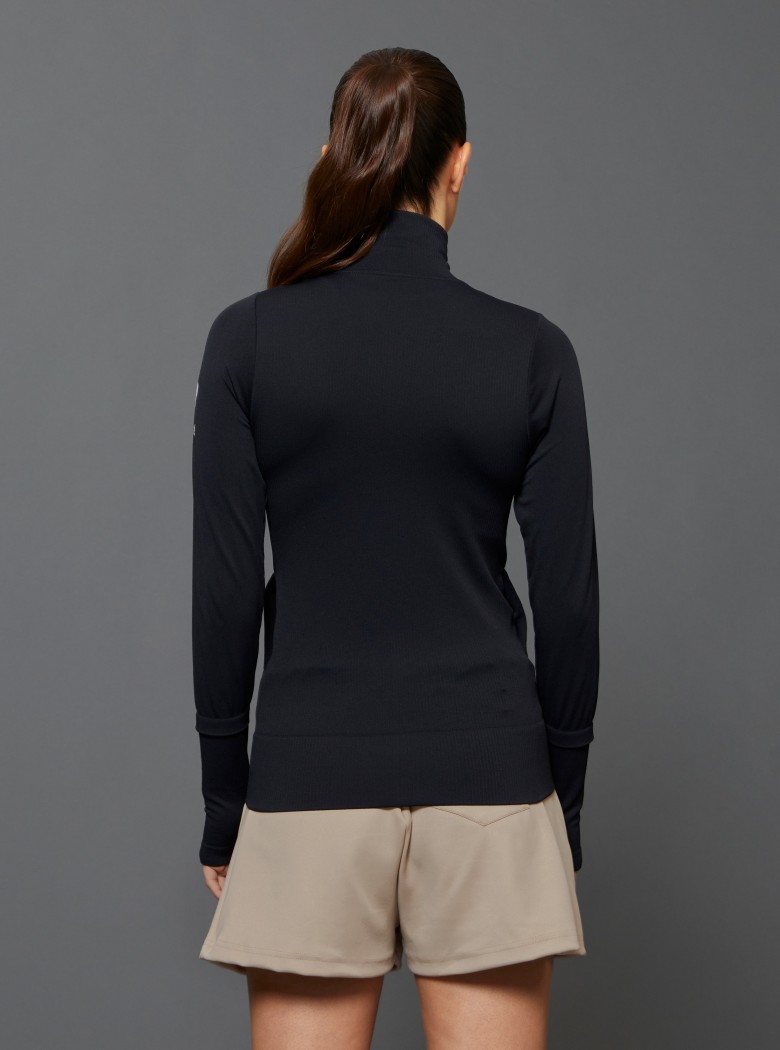 Der gerippte Stehkragen ist weich außen und glatt innen und schützt dich sanft vor Kälte.
