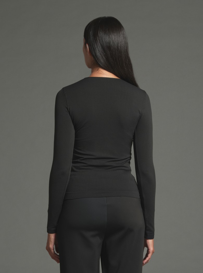 Dieses Rundhals-Langarmshirt mit Shaping-Effekt wurde entwickelt, um das Wohlbefinden der Haut zu verbessern.