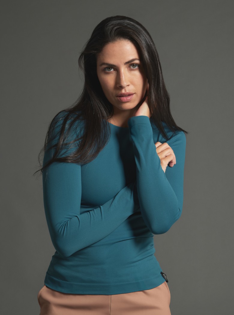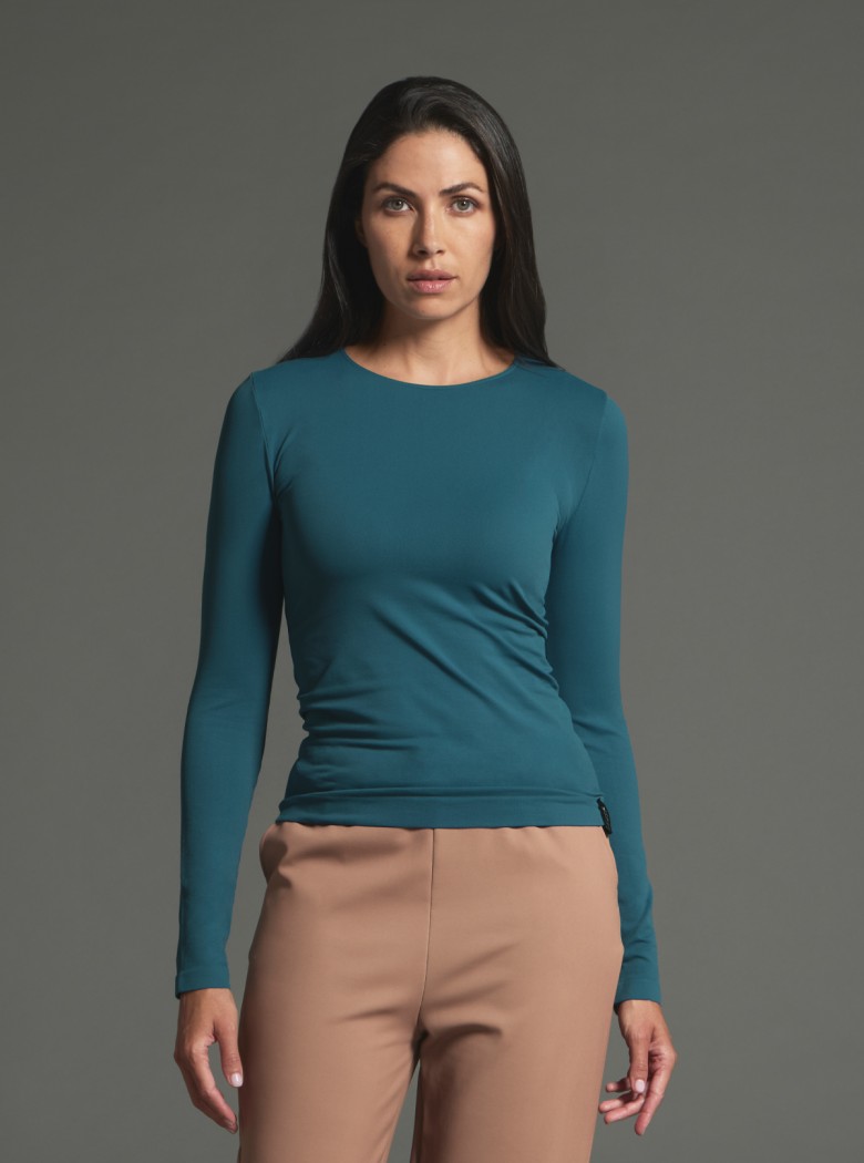 Made with Dermofibra® Cosmetics, this long-sleeve top provides lasting benefits: