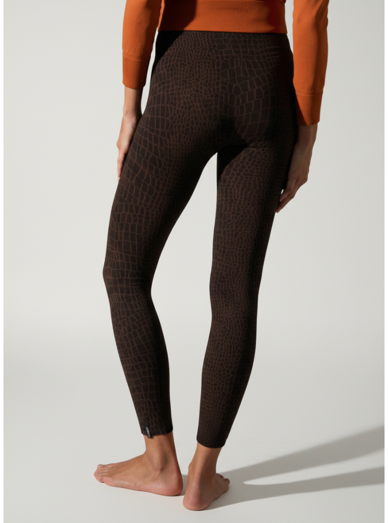 With a crocodile-effect pattern on the whole leggings.