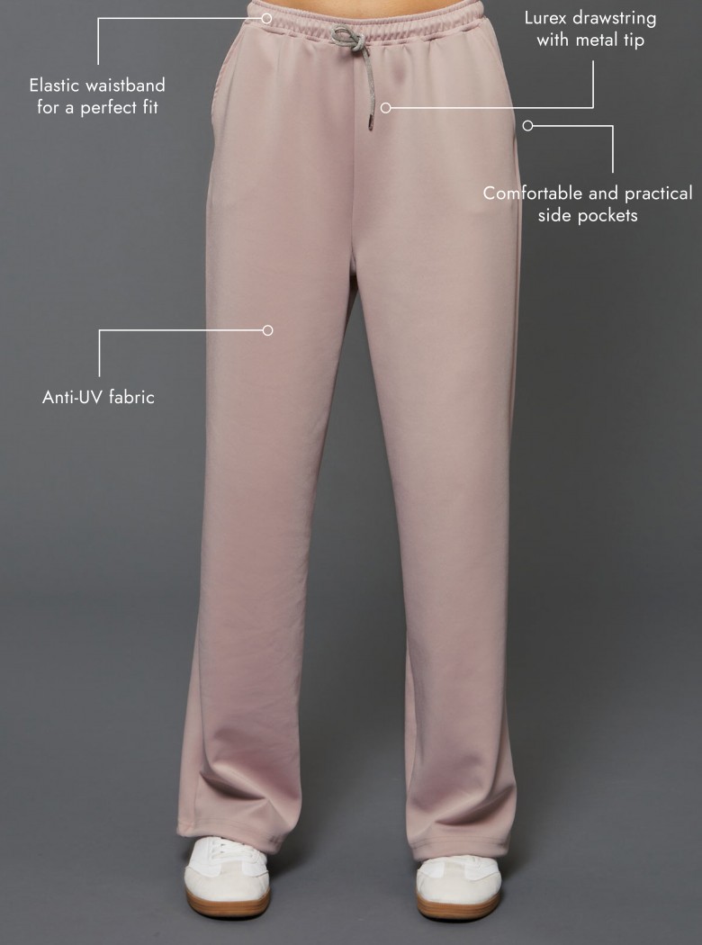 The lurex drawstring with metal tip and elastic waistband ensure a perfect fit.
