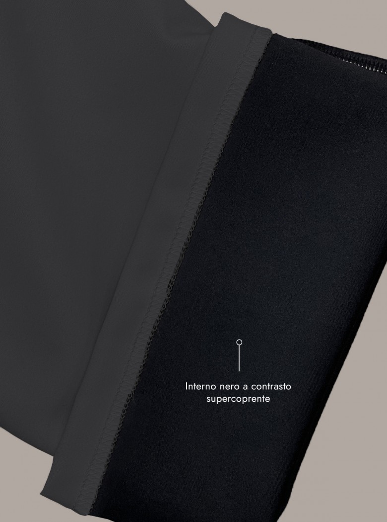 The contrasting black interior ensures full coverage and highlights attention to detail. The waistband features a lurex drawstring with metal tips.