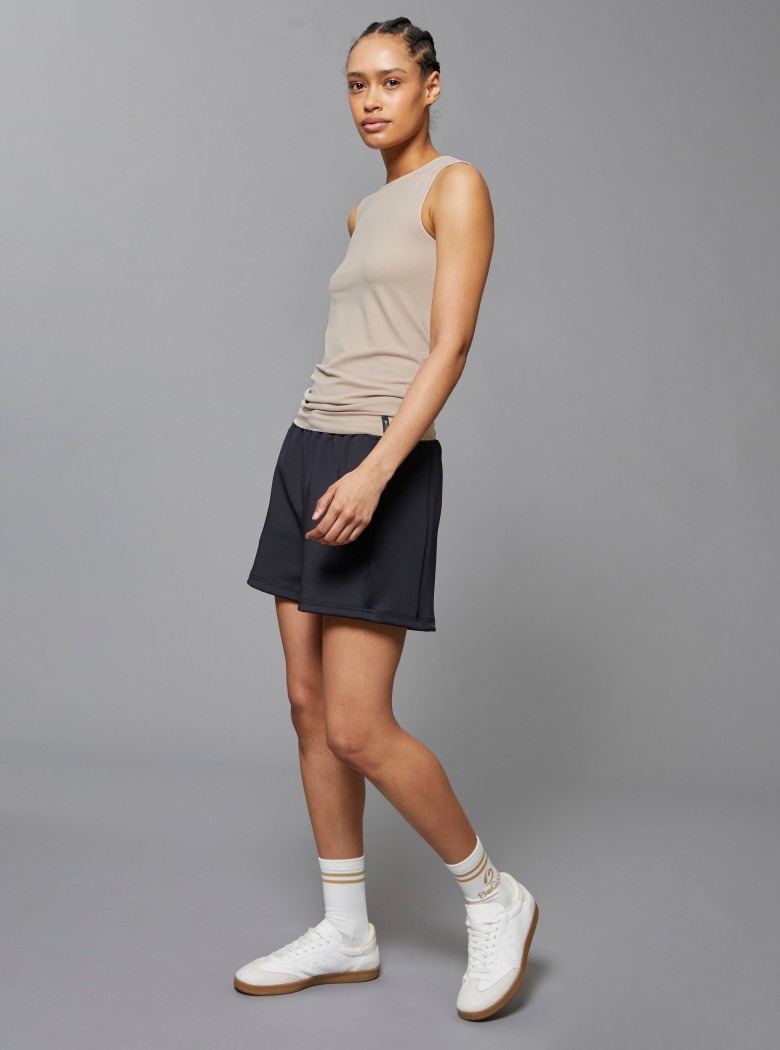 The minimalist design blends with luxurious details: the crew neck and the 5 cm-wide shoulder straps offer a touch of sophisticated simplicity, while seamless sides envelop the body in a light and imperceptible embrace.