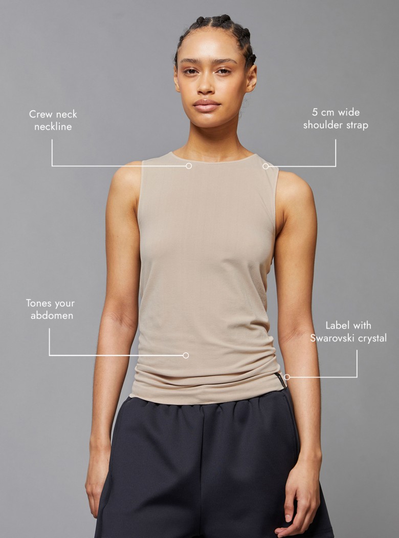 A tank top that is more than just clothing. Made from Dermofibra® Cosmetics, it envelops your body, while nourishing and toning the skin, and its elegant seamless design ensures absolute comfort.