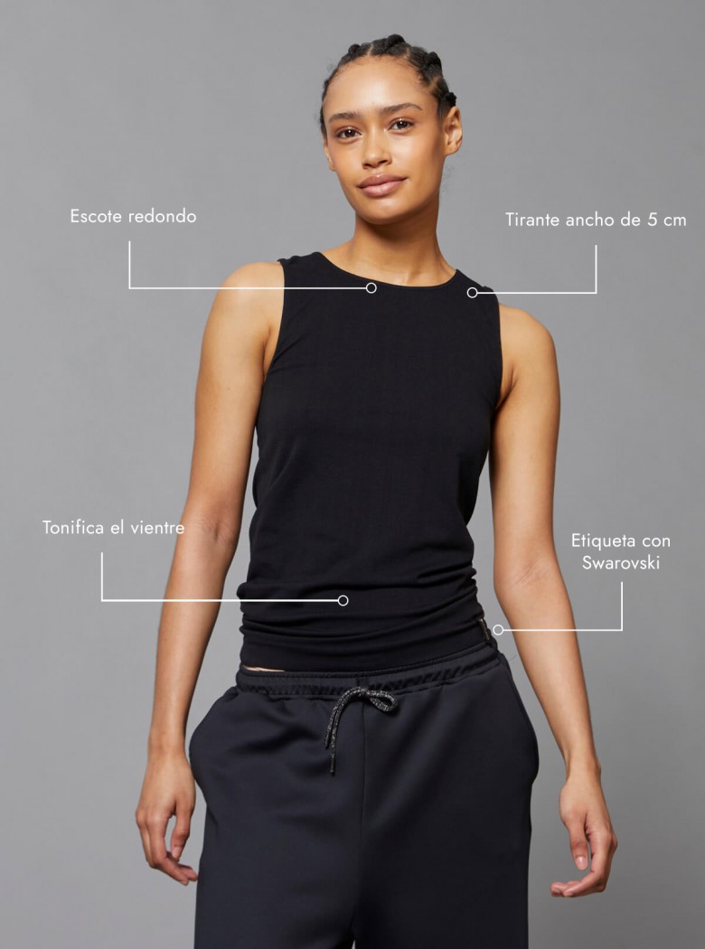Sumérgete en una experiencia de puro confort y refinada elegancia con este top sin mangas, diseñada para resaltar tu silueta con naturalidad.