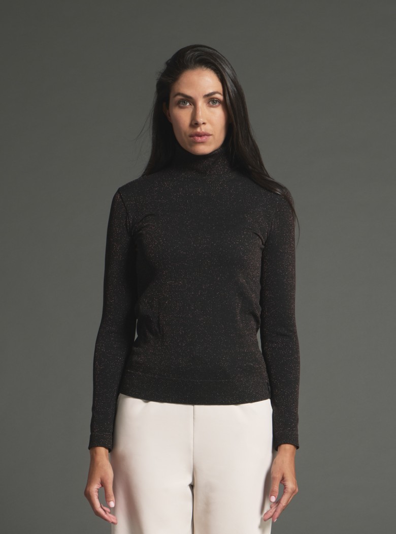 Para tus ocasiones chic, te presentamos el jersey de cuello semi-alto de lurex.