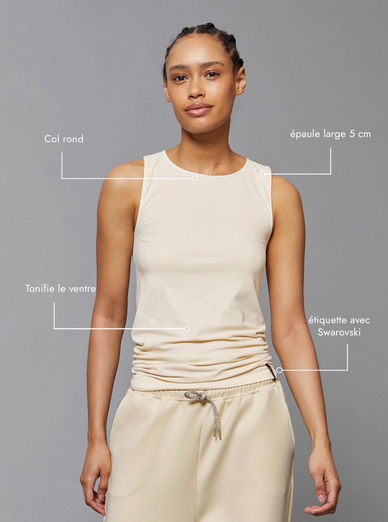 Plongez dans une expérience de pur confort et d'élégance raffinée avec ce débardeur, conçu pour mettre en valeur votre silhouette naturellement.