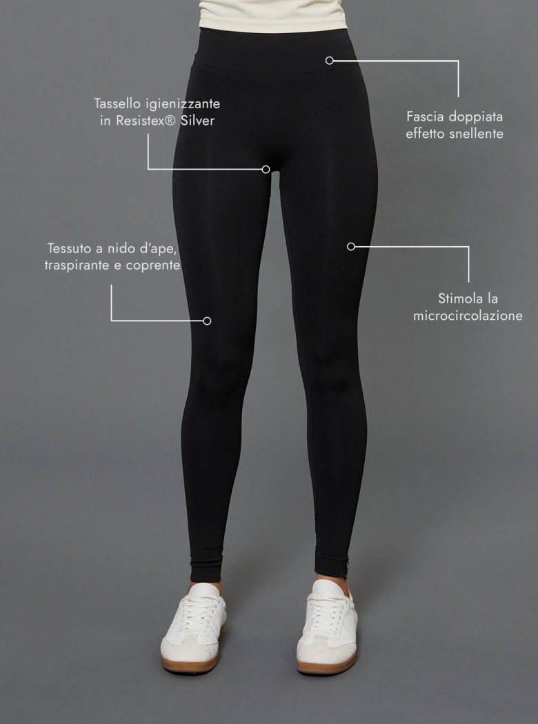 Le Legging Minceur Superslim combine la qualité Made in Italy avec la technologie suisse, garantissant des résultats visibles et un confort unique.