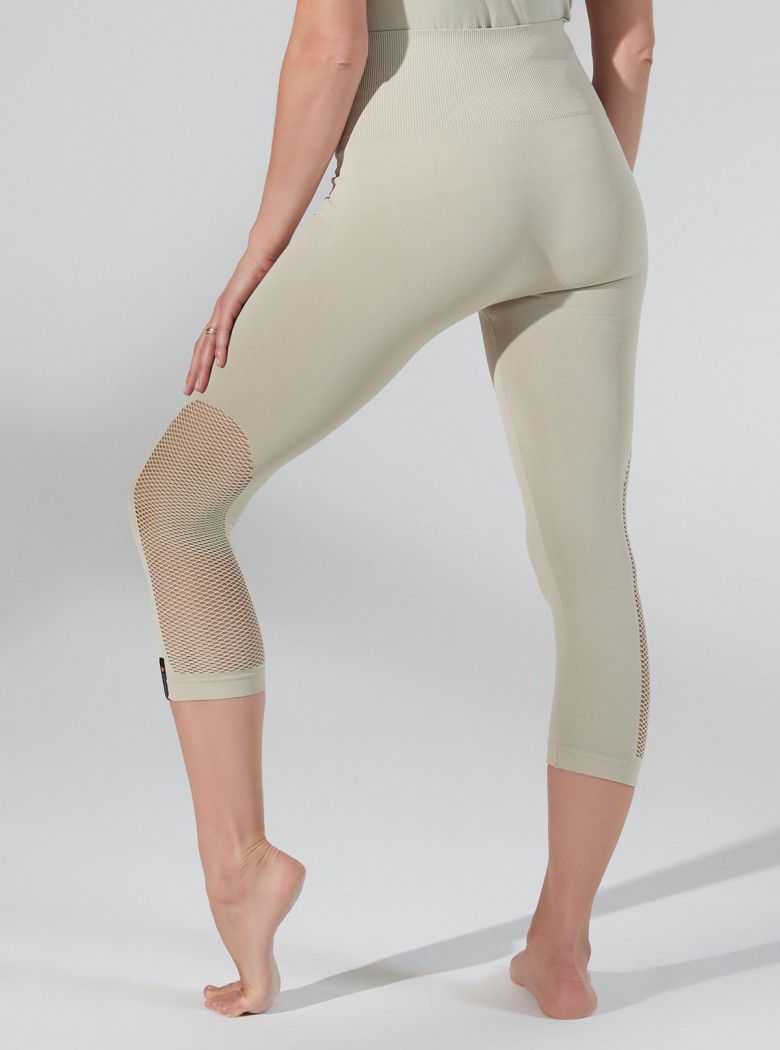 Un tissu fabriqué à partir de fil de recyclé, gainant et anti-UV. Tonifie et stimule la circulation, offre respirabilité et confort pendant la pratique du yoga et protège la peau des rayons ultraviolets.