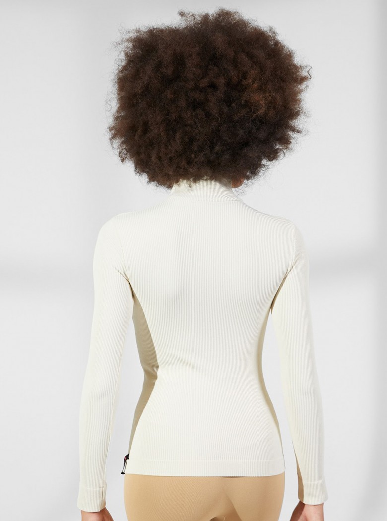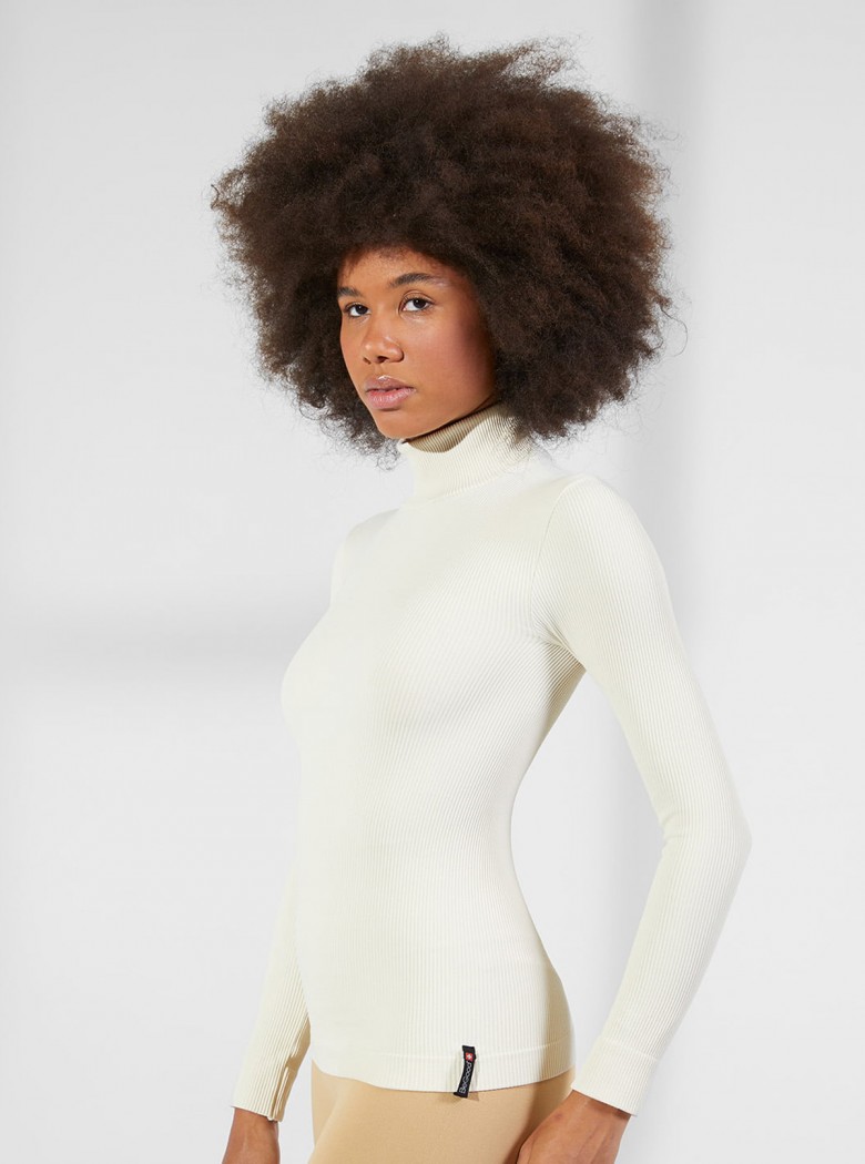Un col roulé en côtelé effet velours plein de bien-être: avec le tissu Dermofibra® Cosmetics hydratant, tonifiant et amincissant.