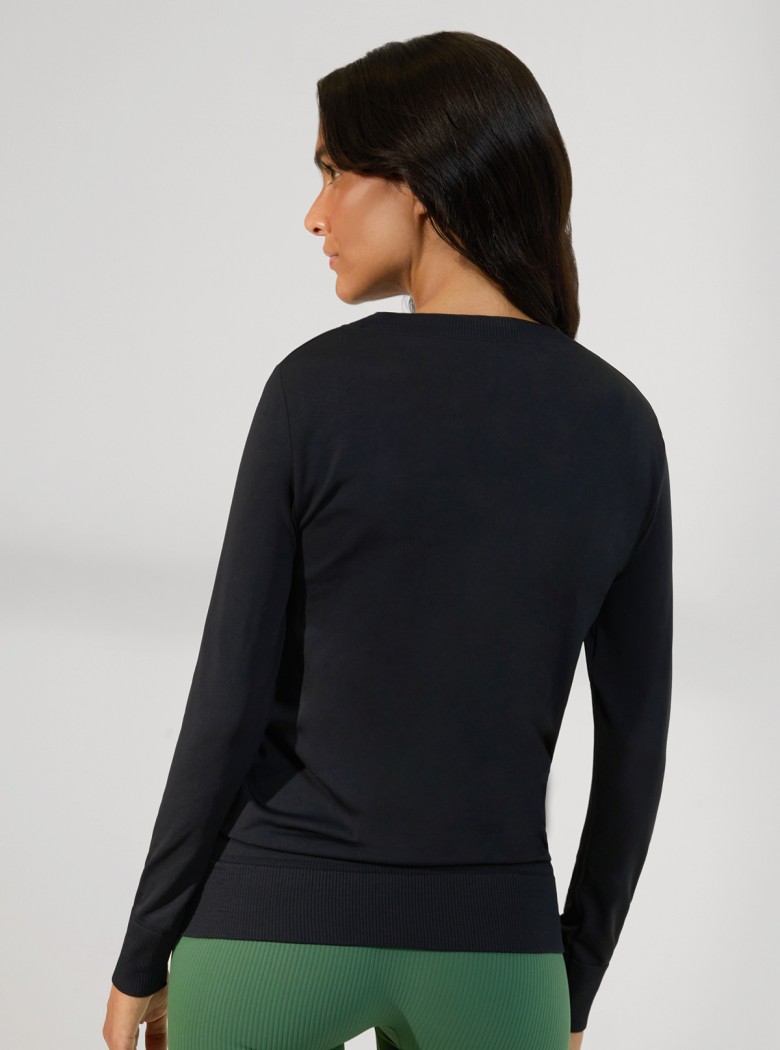 Avec son encolure et ses détails côtelés, ainsi que le logo brodé sur la poitrine, ce vêtement est l’équilibre parfait entre bien-être et raffinement.