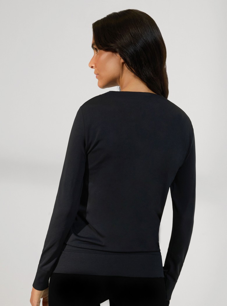 Avec son encolure et ses détails côtelés, ainsi que le logo brodé sur la poitrine, ce vêtement est l’équilibre parfait entre bien-être et raffinement.