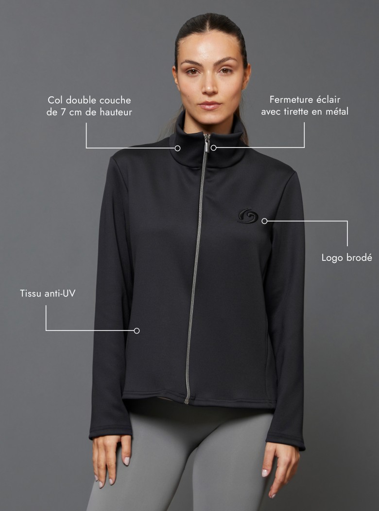 La veste Tech Urban en scuba avec la technologie FIR de Dermofibra® Bio-Infrared offre confort et style, s'adaptant parfaitement au corps.