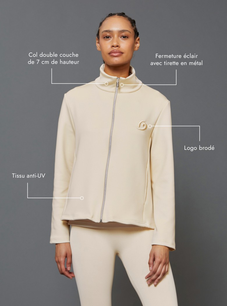 Des détails exclusifs tels que la fermeture éclair à spirale avec tirette en métal et le broderie ton sur ton la rendent idéale pour toutes les saisons, alliant élégance et praticité.