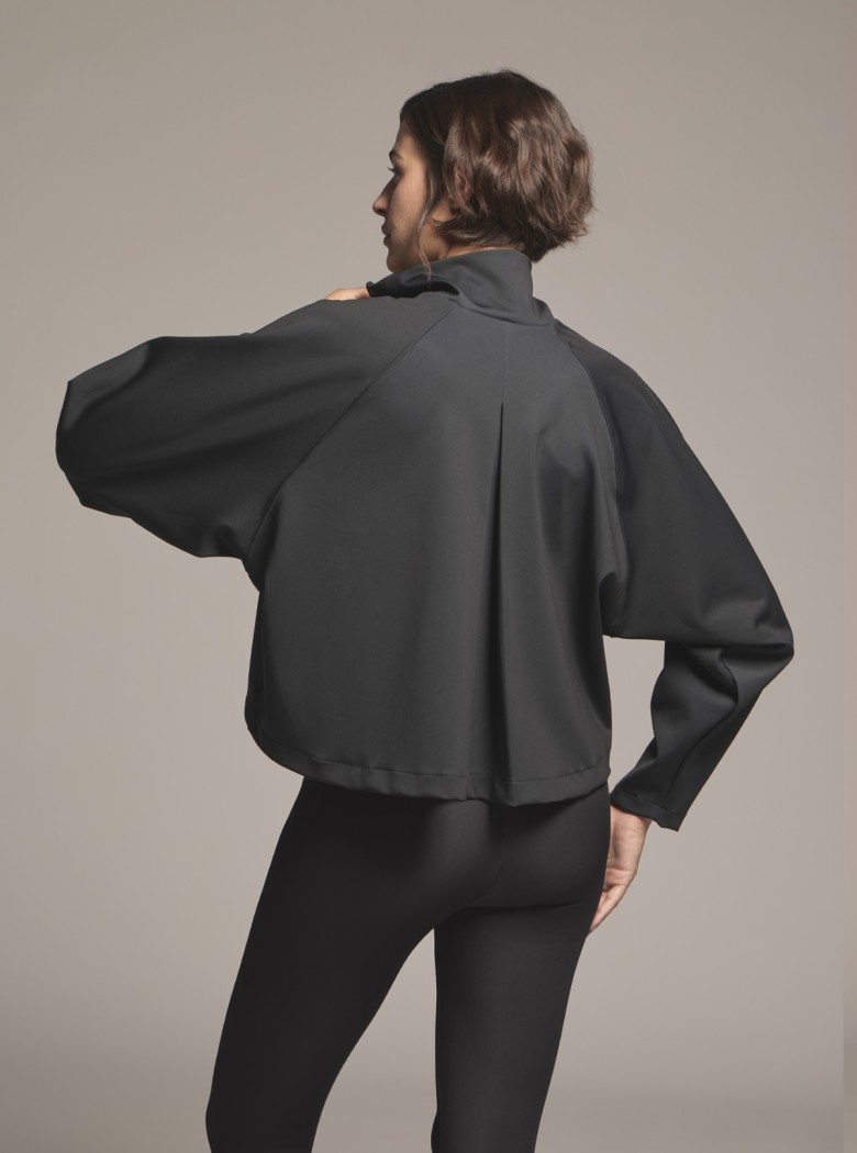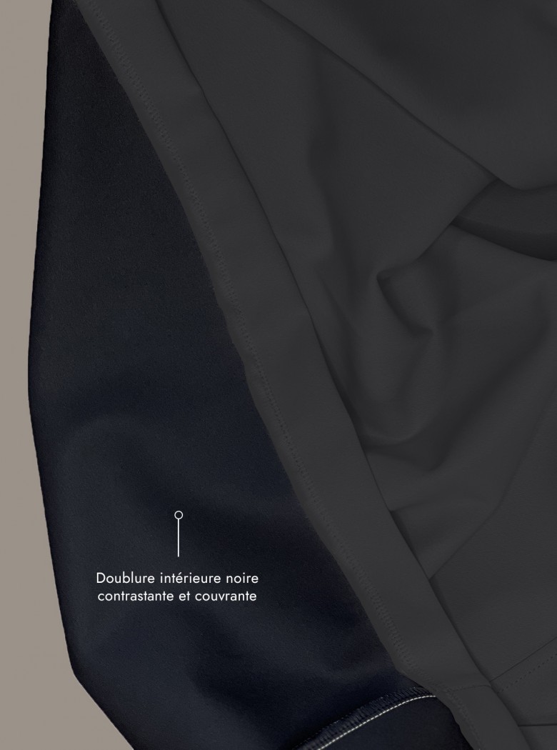 Cette veste femme en tissu respirant est réalisée en scuba de haute qualité et dispose d’un intérieur noir contrastant pour une opacité maximale. La coupe asymétrique, plus longue au dos, apporte mouvement et élégance, tandis que les manches chauve-souris avec couture raglan assurent confort durable et liberté de mouvement.