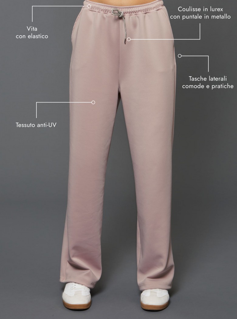 La coulisse in filato lurex con puntale in metallo e la vita con elastico ti garantiscono una vestibilità perfetta.