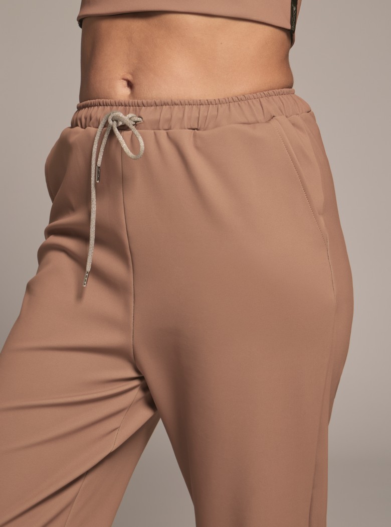 Dalla nuova linea Glam Active, questo pantalone joggers da donna in tessuto traspirante combina linee fluide che valorizzano la silhouette con il massimo comfort. Realizzato in tessuto scuba di alta qualità e 100% made in Italy, è perfetto per un outfit casual da tempo libero.