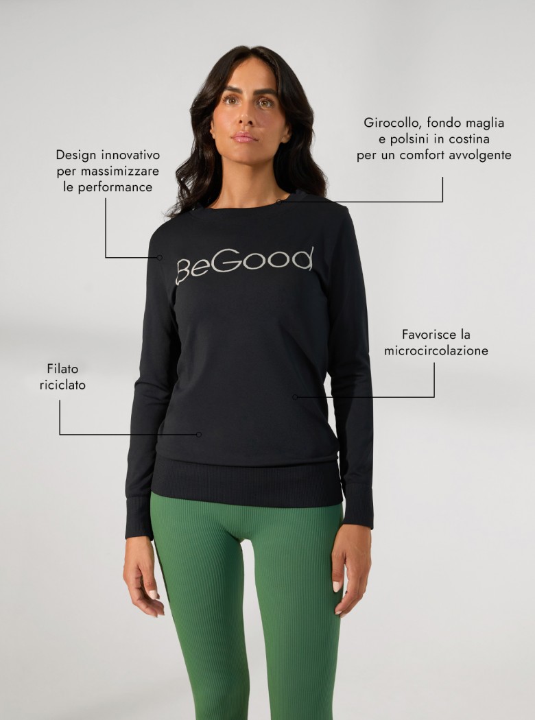 Sul petto, il logo BeGood immagliato racconta una storia di qualità e stile.