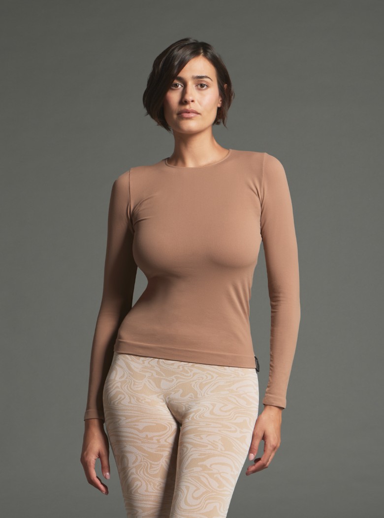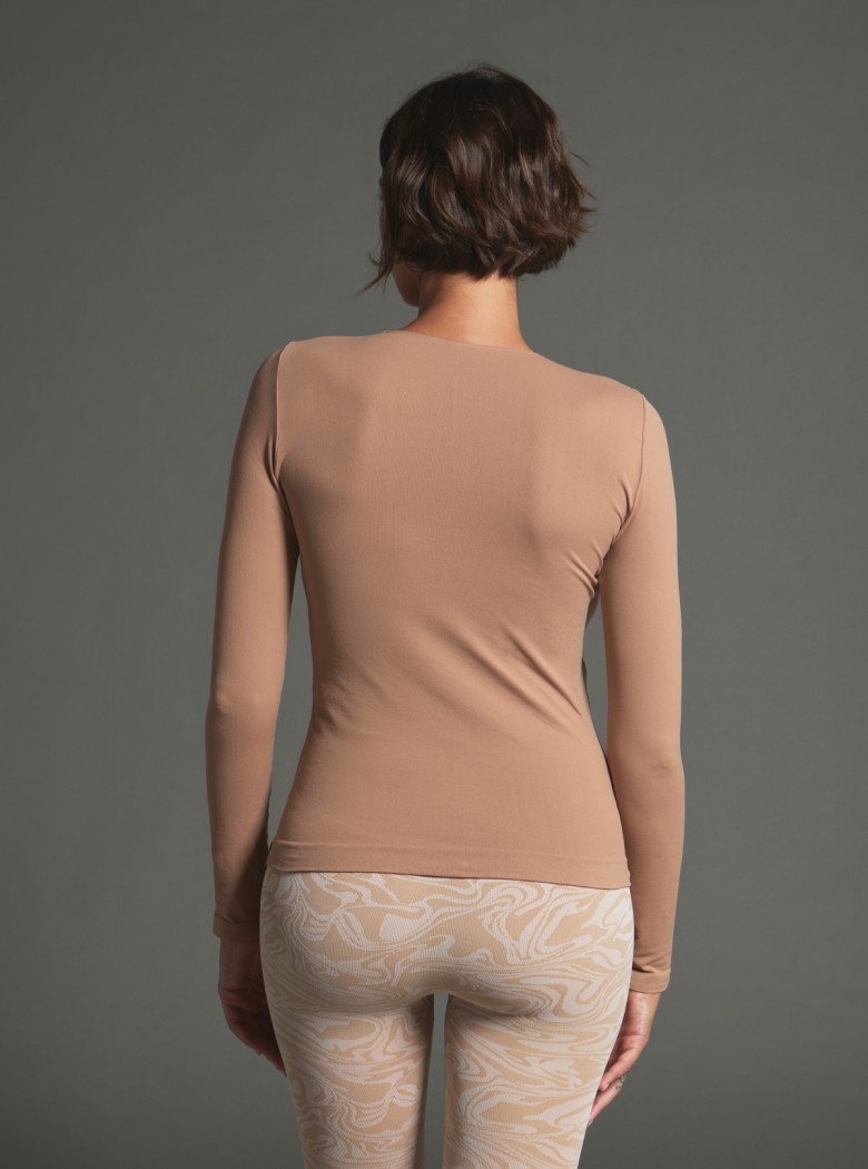 Questa maglia girocollo a manica lunga modellante e idratante è pensata per migliorare il benessere della pelle.