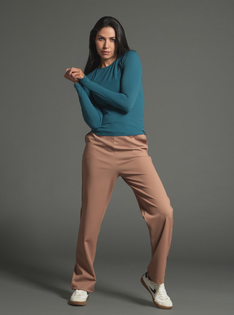Dalla nuova linea Glam Active, linee essenziali, finiture curate e l’unica tecnologia originale e brevettata Dermofibra® Cosmetics si fondono in questa maglia girocollo a manica lunga modellante e idratante, realizzata con materiali di alta qualità e interamente Made in Italy.