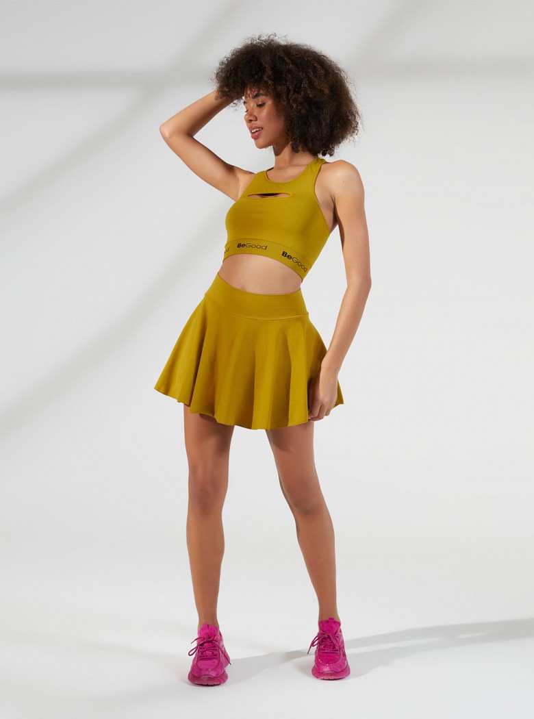 Realizzato in tessuto con filato riciclato, traspirante e ultra confortevole, è una seconda pelle che unisce leggerezza e morbidezza. La scollatura a girocollo, impreziosita da un inserto sul petto, dona un tocco di raffinatezza, mentre ogni cucitura bordata è pensata per garantire massima delicatezza sulla pelle. Il fondo rifinito con banda in costina e il logo BeGood immagliato completano il design con un tocco finale di classe.