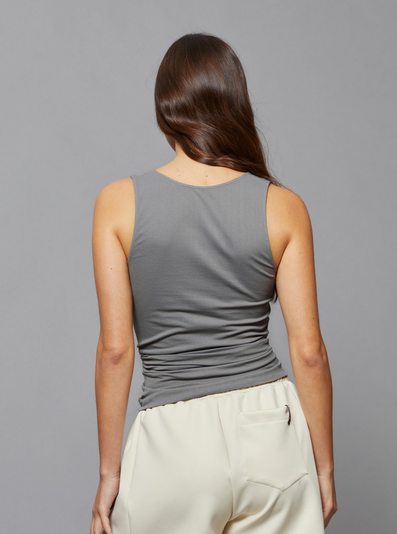 Immergiti in un’esperienza di puro comfort e raffinata eleganza con questa canotta pensata per esaltare la tua silhouette con naturalezza.