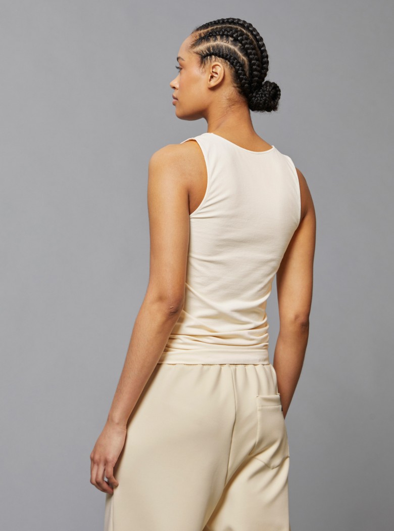 Immergiti in un’esperienza di puro comfort e raffinata eleganza con questa canotta pensata per esaltare la tua silhouette con naturalezza.