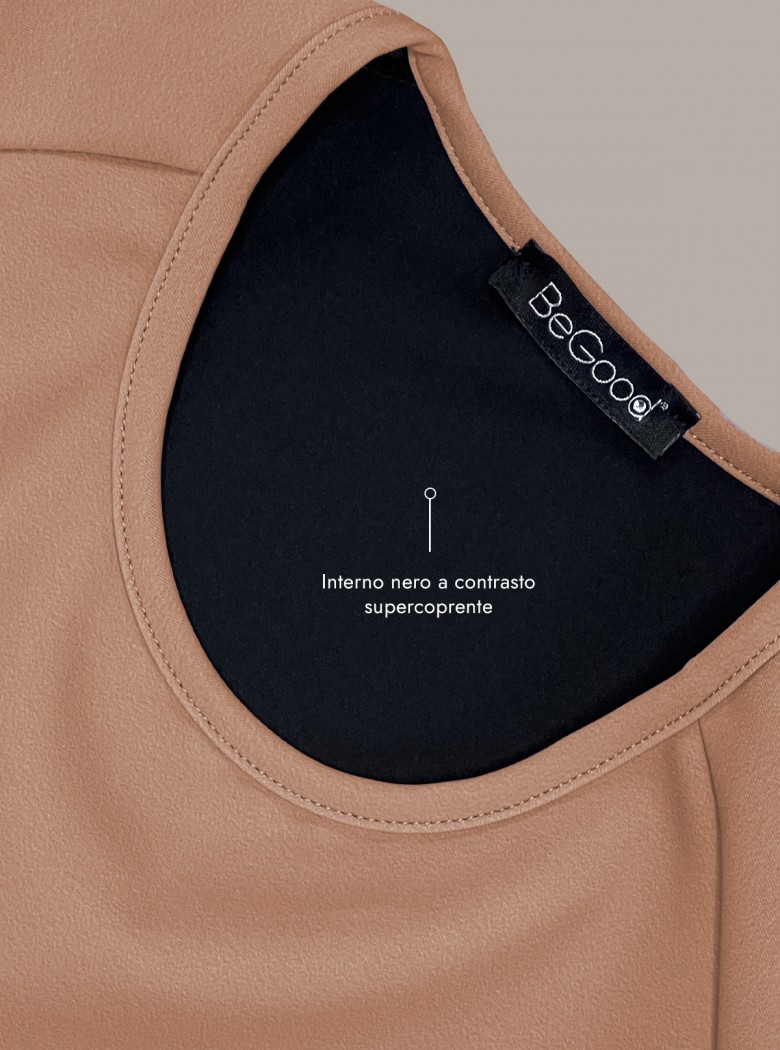 Realizzata in Italia con tessuto scuba di alta qualità, integra la tecnologia brevettata Dermofibra® Cosmetics per idratare la pelle, migliorarne l’elasticità e garantisce un’azione tonificante.